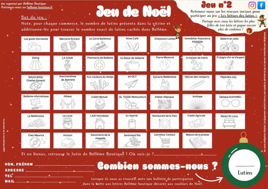 Bellême Boutique vous invite à une double dose de magie avec son incontournable Jeu de Noël et un tout nouveau jeu sur les réseaux sociaux ! Préparez-vous à jouer, chercher et partager la magie de Noël.